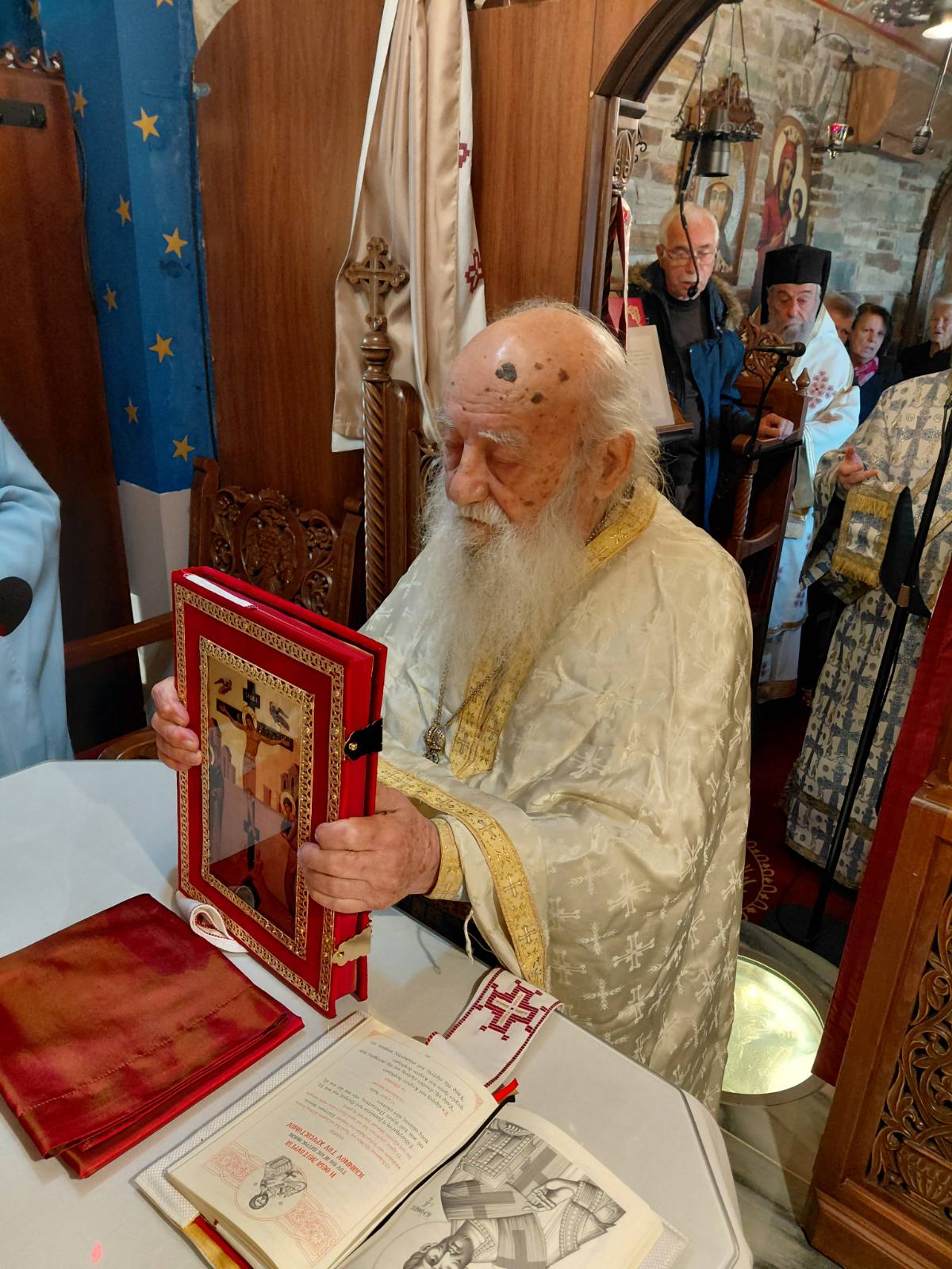 Το μεθεόρτο Εσπερινό τέλεσε Αιδεσιμολογιώτοτας Πρωτοπρεσβύτερος Αθανάσιος Νόβας, πλαισιούμενος από τον Ιερολογιώτατο Διάκονο Αστέριο Αποστόλου. Τους ύμνους απέδωσε ο Ιερολογιώτατος Διάκονος Θεόδωρος Πέππας.