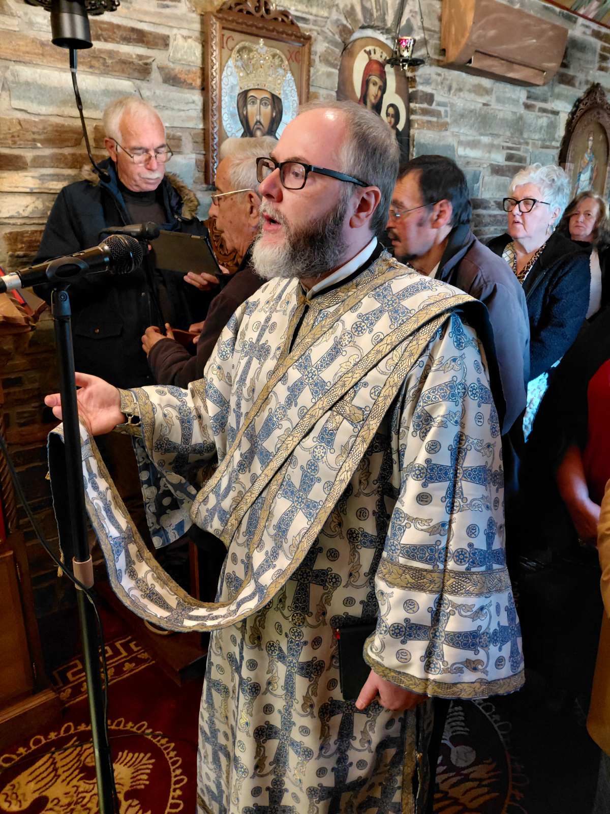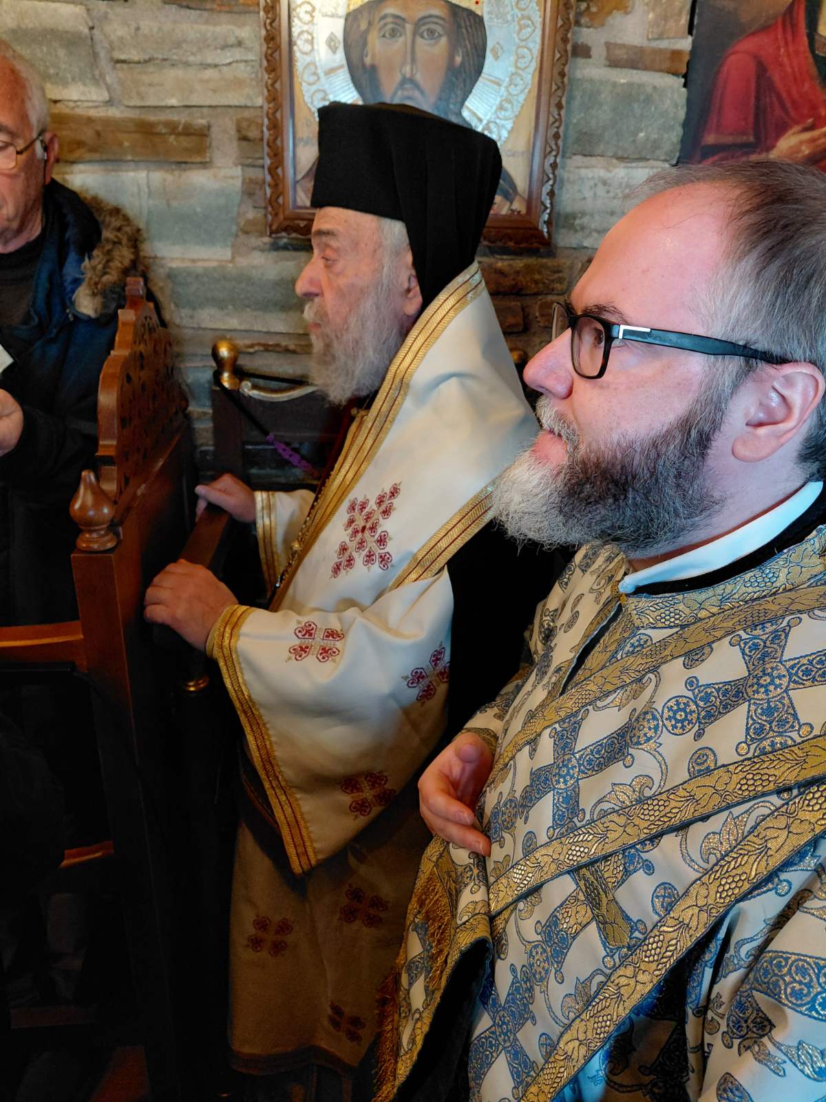 Στο Ιερό Αναλόγιο, τον Ιερολογιώτατο Διάκονο, της Ιεράς μας Μητροπόλεως, Θεόδωρο Πέππα πλαισίωσε ο Ιεροψάλτης ενορίας Καρύστου Ευάγγελος Ορφανός.