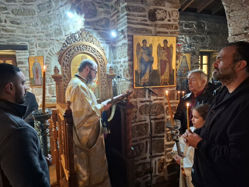 Τη Γ’ Κυριακή των Νηστειών 15 Μαρτίου, ο Σεβασμιώτατος Μητροπολίτης Καρυστίας και Σκύρου κ.κ. Σεραφείμ μετέβη στην Ιερά Μονή Αγίου Χαραλάμπους Λευκών Αυλωναρίου, όπου τέλεσε την Αρχιερατική Θεία Λειτουργία, με συλλειτουργούς τον Πανοσιολογιώτατο Αρχιμανδρίτη Αντώνιο Αγγελόπουλο, τον Πρωτοπρεσβύτερο Άγγελο Βακαλόπουλο και τον Ιεροδιάκονο Θεοδώρο Πέππα.
