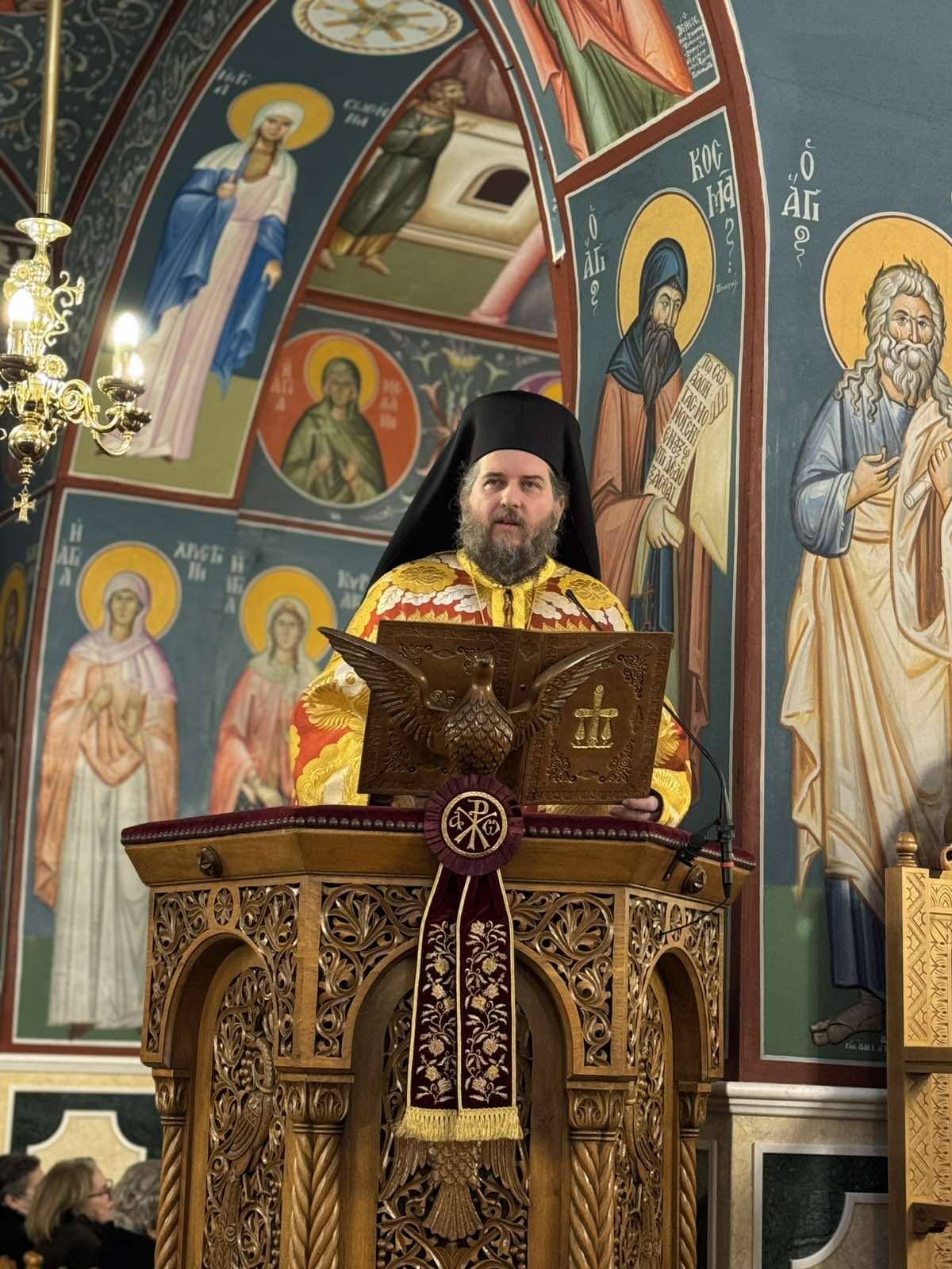 Το Θείο Λόγο κήρυξε ο Σεβασμιωτάτος Μητροπολίτης Κορυτσάς κ.κ. Αναστάσιος, ο οποίος επεσήμανε ότι «η ανακομιδή των λειψάνων δεν είναι απλώς συναισθηματική ανάμνηση του παρελθόντος, αλλά ομολογία πίστεως, που διατρανώνει ότι το σκήνωμα του Ιερομάρτυρος ηγιάσθη και συμμετέχει ήδη στην δόξα της Αναστάσεως του Χριστού… Η Αγία Γραφή μαρτυρεί ότι ο Θεός ενεργεί διά της ύλης … ... συνεπώς, η Εκκλησία, τονίζει ότι η Χάρις του Θεού δεν αναιρεί την ύλη, αλλά τη μεταμορφώνει, την ανυψώνει, την αγιάζει…». Αναφερόμενος στον εορταζόμενο Άγιο Ιγνάτιο τον Θεοφόρο, παρατήρησε ότι «μας παρέδωσε, διά των Θεοπνεύστων επιστολών του, το φρόνημα της ενότητος, της ευχαριστιακής ζωής και της αφοσίωσης στον Επίσκοπο, ως εικόνα Χριστού μέσα στην Εκκλησία…». Αναφέρθηκε δε, με δέος στο πρόσωπο του Μακαριστού Αρχιεπισκόπου Αλβανίας κυρού Αναστασίου, τονίζοντας ότι «δεν υπήρξε απλώς ένας Ιεράρχης, αλλά ένας οικουμενικός δάσκαλος. Όταν το 1991 έφτασε στην Αλβανία, βρήκε συντρίμμια. Εκεί που άλλοι έβλεπαν αδιέξοδο, εκείνος είδε την ευκαιρία για μια εκ βάθρων αναγέννηση. Με ακατάβλητη επιμονή, αναστήλωσε όχι μόνο ναούς, αλλά κυρίως τις ψυχές των ανθρώπων, χρίζοντας γέφυρες διαλόγου. Σήμερα, η κληρονομιά που μας αφήνει είναι μια ζωντανή απόδειξη ότι η πίστη, όταν συνδυάζεται με τον σεβασμό στον κάθε άνθρωπο – ανεξαρτήτως καταγωγής ή θρησκεύματος – μπορεί να αλλάξει τον κόσμο. Ο Αναστάσιος υπήρξε και θα παραμείνει ένας φωτεινός φάρος ενότητας και ειρήνης». Ολοκληρώνοντας την ομιλία του, αναφέρθηκε με λόγους ευγνωμοσύνης στον εορτάζοντα κ.κ. Ιγνάτιο, τον οποίο γνωρίζει και παρακολουθεί από χρόνων πολλών και τόνισε ότι «η ονομαστική εορτή του Επισκόπου δεν είναι προσωπική. Είναι εορτή της Εκκλησίας. Είναι πρόσκληση για προσευχή, ενότητα, συμπόρευση ποιμένος και λαού…».